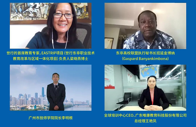3月4日下午,世行的首席教育专家、EASTRIP项目(世行东非职业技术教育改革与区域一体化项目)负责人梁晓燕博士、东非高校联盟执行秘书长班延金博纳(Gaspard Banyankimbona)等嘉宾、广州市技师学院院长李明根、副院长陈实与校教研团队以及全球培训中心CEO、太阳成集团tyc33455ccwww总经理王艳凤共同出席了“东非—中国广东职业教育国际培训与分享交流讲座”结课仪式。