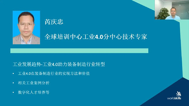 全球培训中心工业4.0分中心技术专家芮庆忠介绍了工业4.0在装备制造行业的实现方法和价值,包括更灵活的生产、上市更快的产品、更高的生产效率;同时通过对相关工业案例、数字化人才培养等方面进行分析,为参训学员指出了当前世界上工业发展趋势,即工业4.0助力装备制造行业数字化转型。
