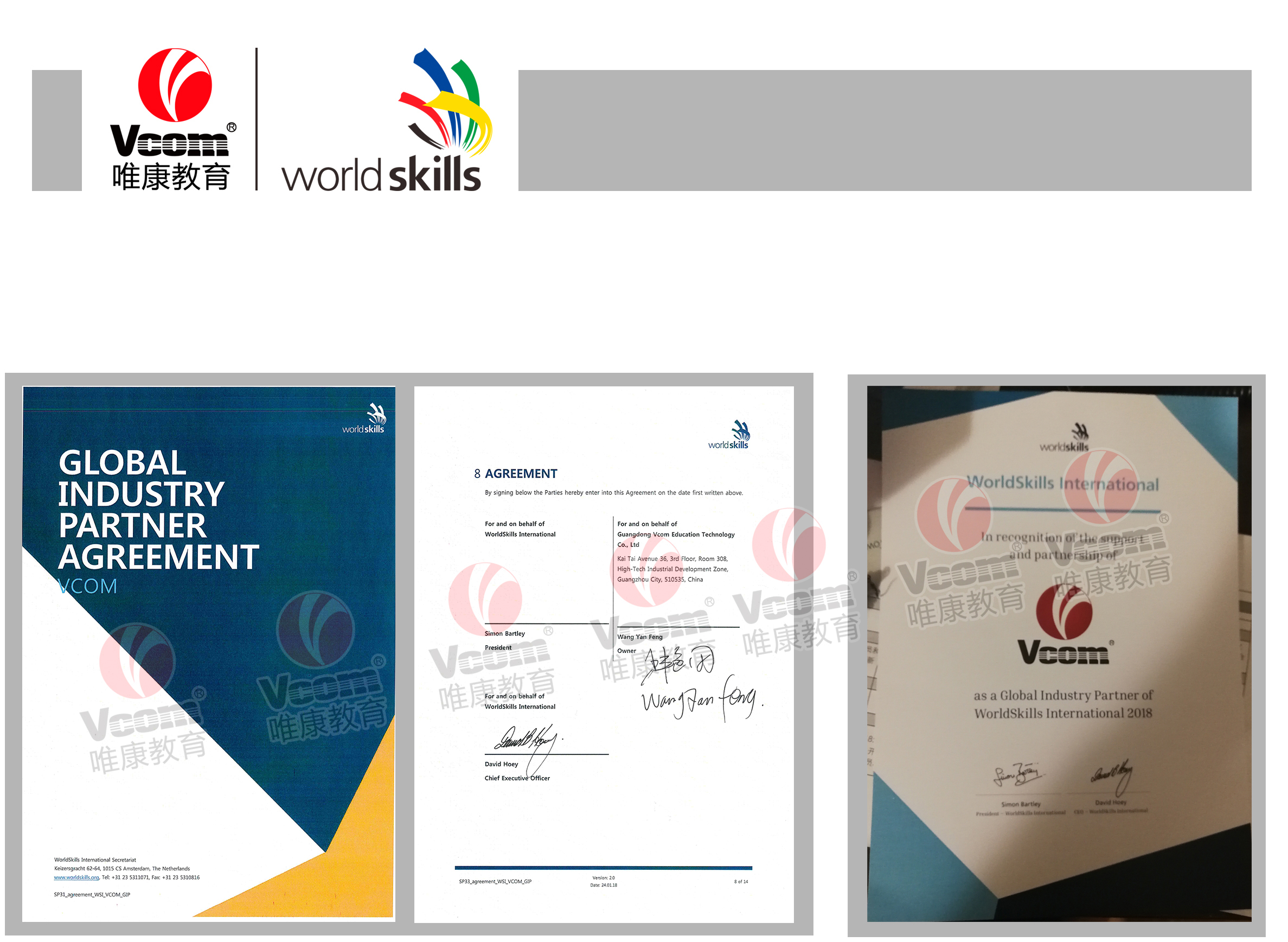 世界技能组织“全球行业合作伙伴”成员单位签约及证书