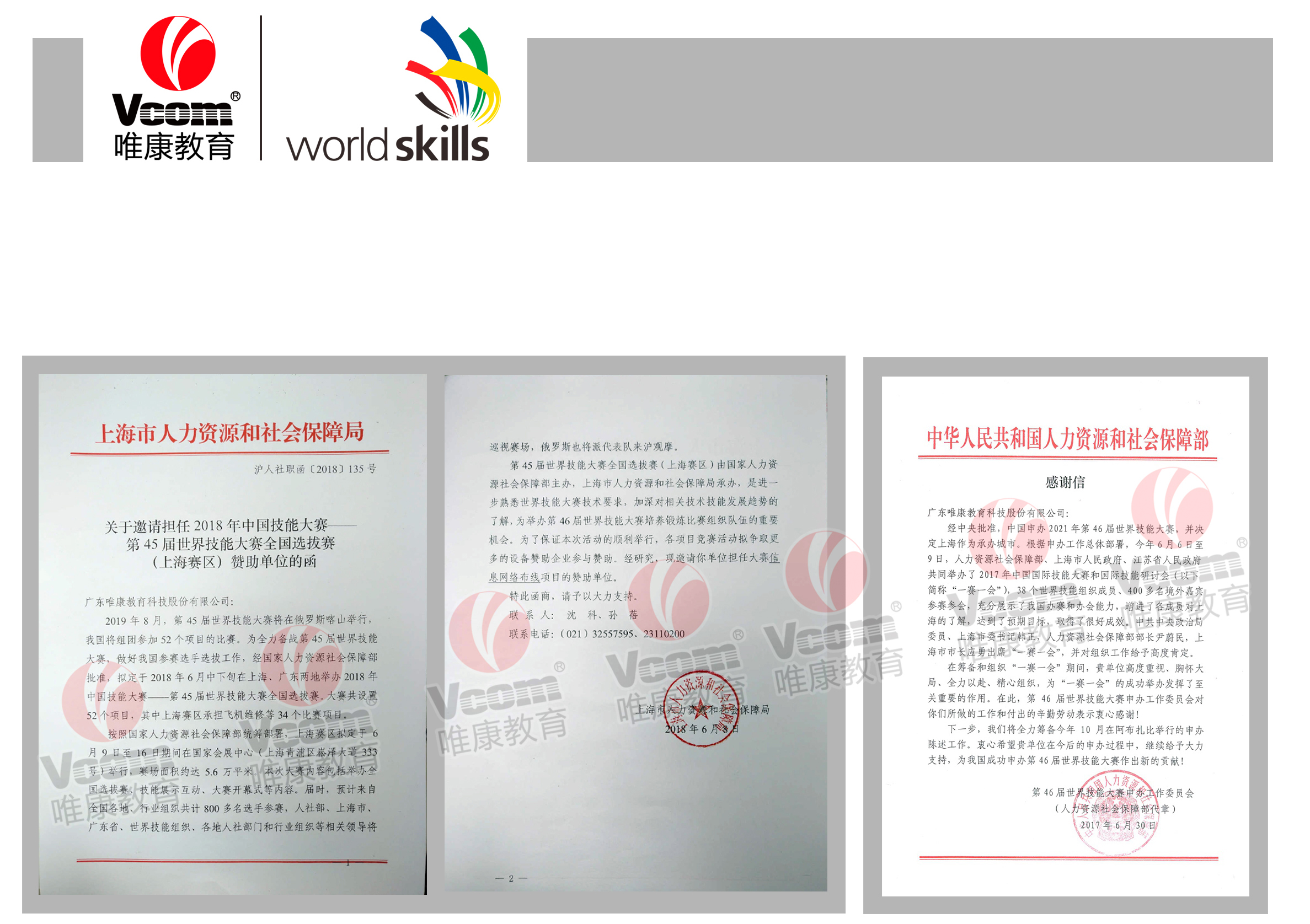 第45届世赛选拔赛赞助和人社部的感谢信