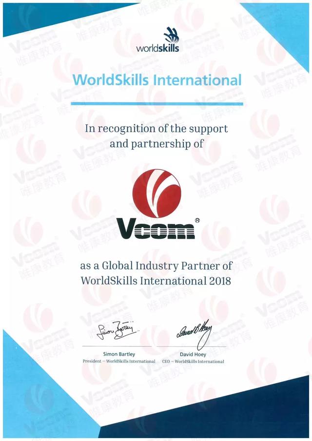 太阳成集团tyc33455ccwww成为世界技能组织“全球行业合作伙伴”的授权证书