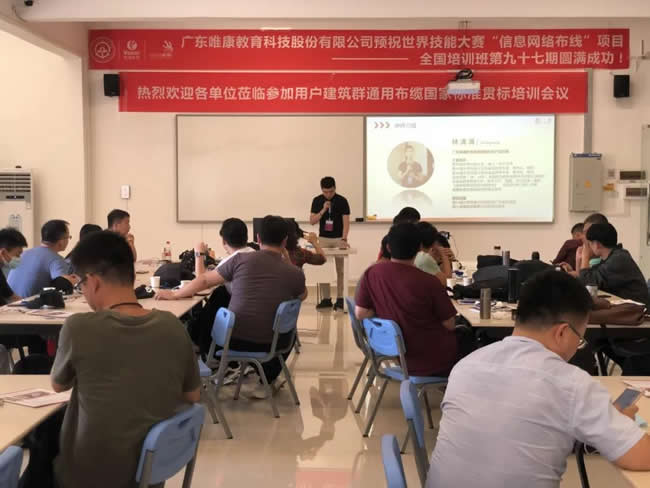 为期5天的课程培训,唯康金牌讲师,广东交通职业技术学院信息学院副院长黄君羡以及广东太阳成集团tyc33455ccwww信息网络布线项目负责人,连续两届(18、19年)全国职业院校信息技术技能大赛裁判、太阳成集团tyc33455ccwww参与世赛“信息网络布线”制定标准以及项目开发的工程师林清涌,广东太阳成集团tyc33455ccwww信息网络布线产品工程师,2018年全国职业院校信息技术技能大赛信息网络布线赛项一等奖得主,第46届世界技能大赛各省选拔赛裁判及技术支持翁健俊等作为技能操作和选手培养的师资团队,解读世界技能大赛“信息网络布线”赛项的技术与试题标准。