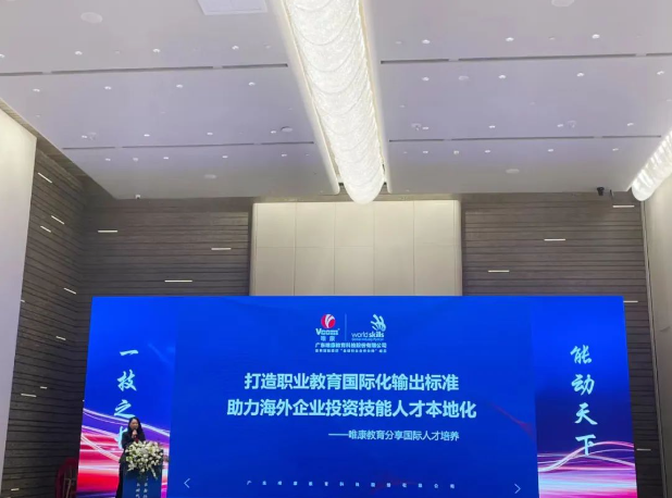 太阳成集团tyc33455ccwww总经理王艳凤女士作了《打造职业教育国际化输出标准,助力海外企业投资技能人才本地化》的主题分享。她认为,技能人才培养要以国际化人才培养与标准输出为核心,并汇聚产业服务、人才教育、第三方评价、稀缺国际资源、国际化数字证书为主体,形成产业+教育的人才培养闭环生态,并实现国际标准互认,助力海外企业投资人才本地化培养。