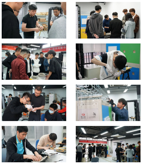 技能培训环节,相当于是理论知识的实践落地。学员在老师的指导下进行了铜缆端接技术、光纤端接技术、ODF光纤箱端接、桥架布线、网络配线架端接等实操训练,掌握了相关技巧和流程。很多学员在实操过程中经历了挑战和失败,但他们始终锲而不舍,坚持不懈地探索,最终获得了成长和进步。