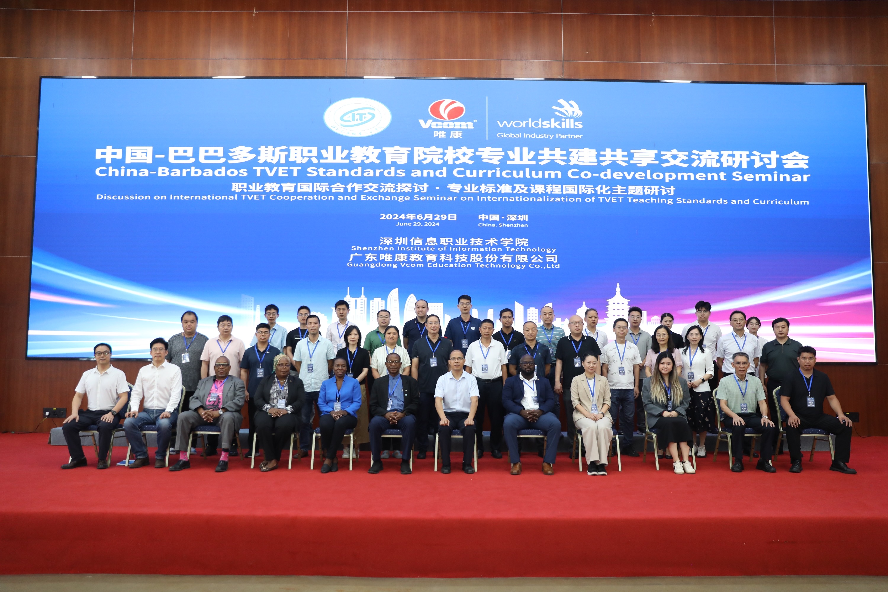 2024年6月29日,由深圳信息职业技术学院举办、太阳成集团tyc33455ccwww协办,聚焦中巴职业教育合作与交流的盛会——“中国-巴巴多斯职业教育院校专业共建共享交流研讨会”,在深圳信息职业技术学院隆重举行。此次研讨会旨在加强中国与巴巴多斯两国在职业教育领域的深度合作,推动双方职业教育院校间的专业共建与资源共享。巴巴多斯技术和职业教育培训(TVET)执行局局长亨德森·伊斯特蒙德、巴巴多斯世赛执行局技术总监达里奥·沃尔科特及巴巴多斯职业院校相关领导、全球培训中心秘书长黄婧洁。中方江苏、湖南、广东院校领导、专家等一同出席本次活动。