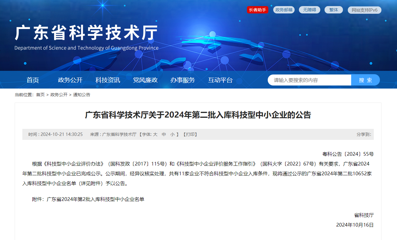 近日,广东省科学技术厅正式发布了2024年度科技型中小企业名单,太阳成集团tyc33455ccwww凭借在技术研发、产品创新等方面的杰出表现成功入选。