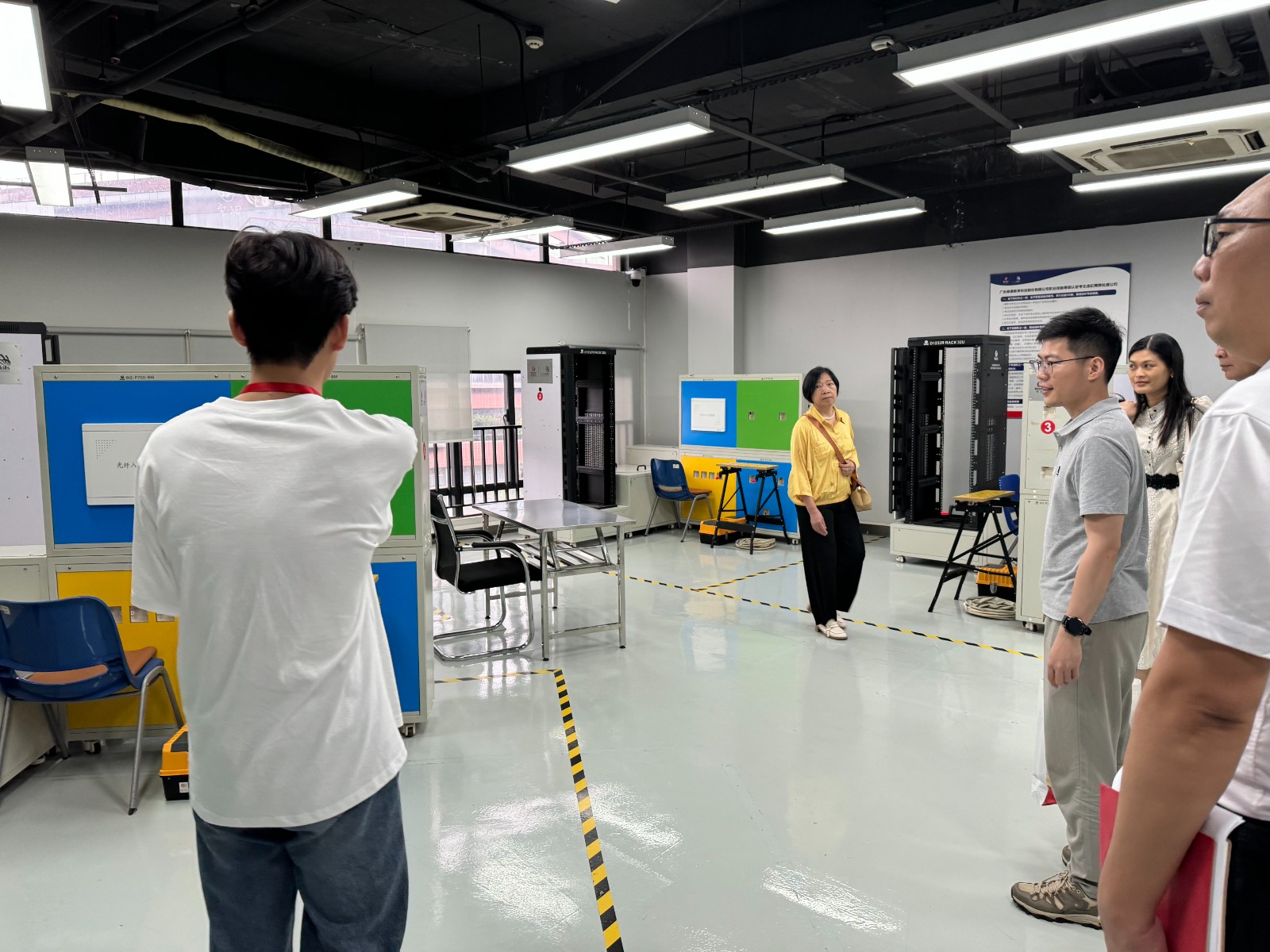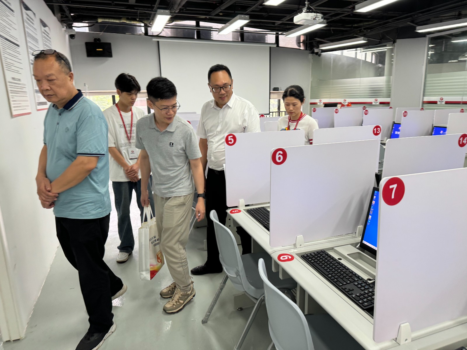 首先,张志文主任代表公司对领导、专家组的到来表示了热烈的欢迎,对我司职业技能等级认定工作情况和认定工作实施流程及考点情况作了详细汇报。市职建中心梁惠康老师及专家组对我司考点理论考试室、实操考试室、监控机房、候考室、考务办公室、阅卷室、档案室、保密室等考试相关场所进行实地考察,现场评估以上场所的仪器设备、视频监控及消防安全设施情况等。