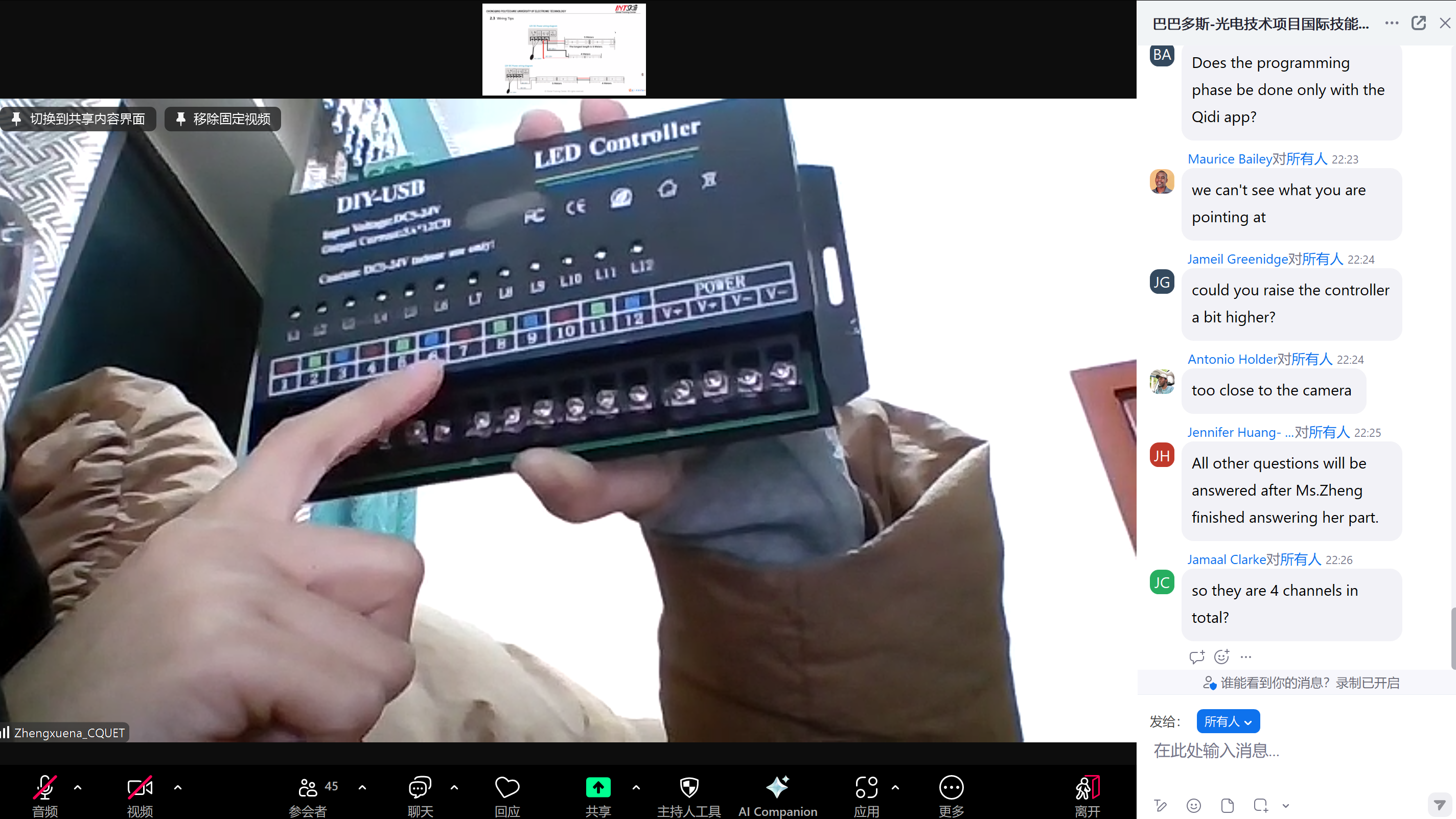 第二次课由重庆电子科技职业大学周渝曦教授和吴娟教授主讲,课程聚焦于可编程LED灯带的亚克力板安装、接线技巧以及动态效果设置,带领学员们深入理解智能光效设计逻辑。