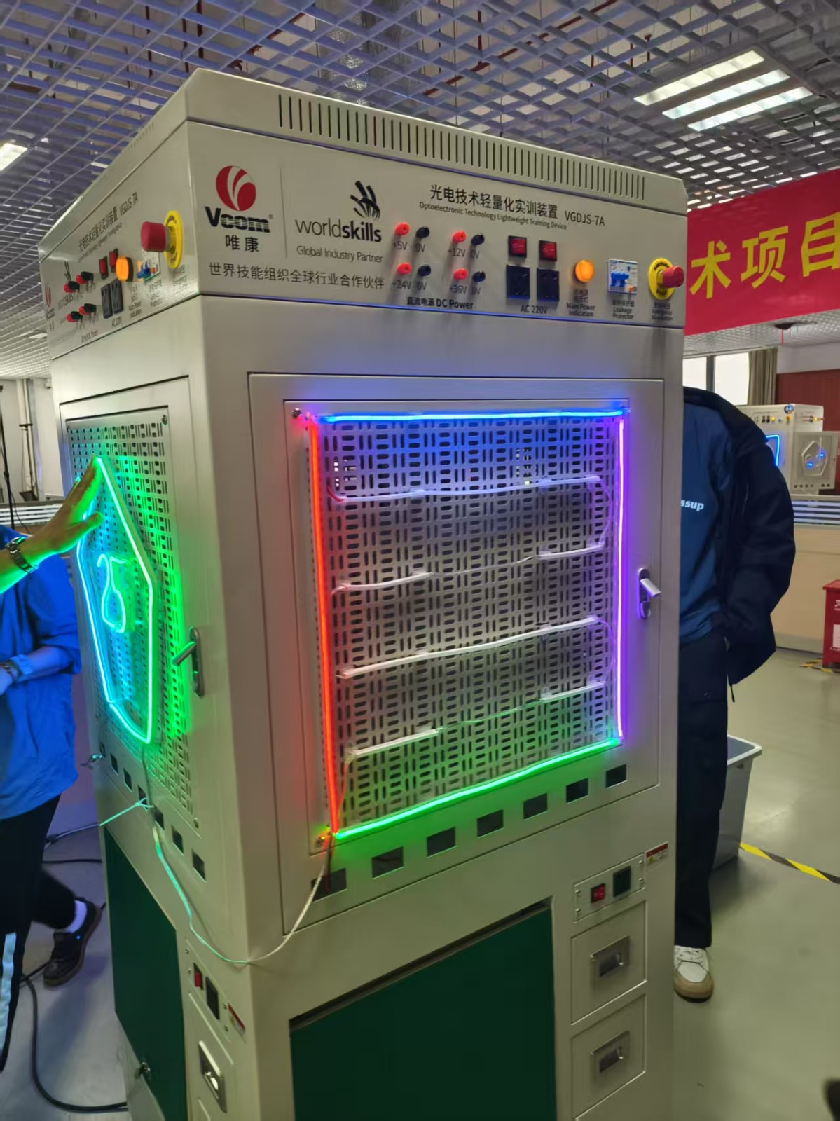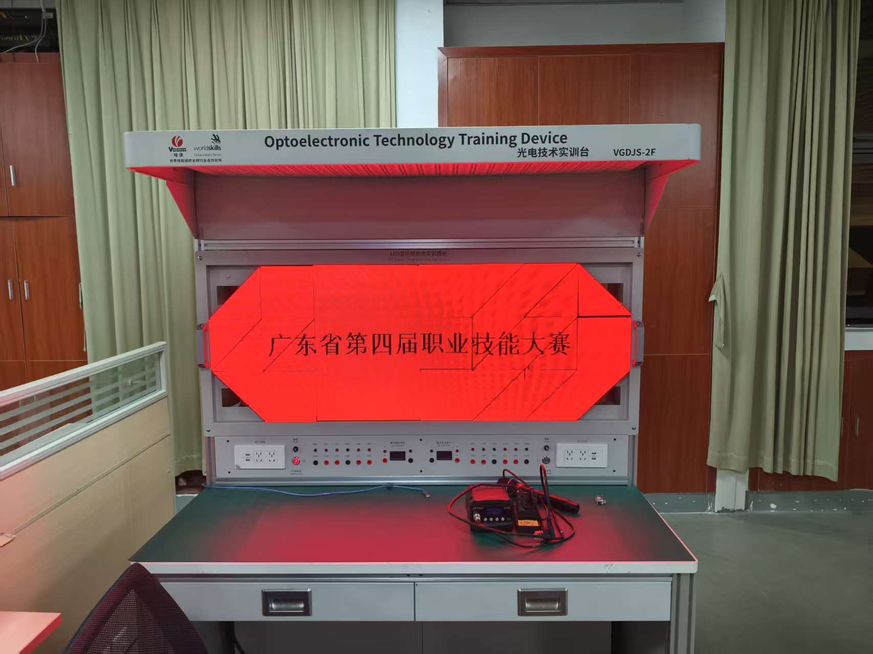 光电技术赛项是指以智能照明及显示相关的光电产品制造及工程应用技术,满足智慧城市对室内外光环境及信息显示需求的项目。该项目对选手技能和能力的要求主要包括:工作组织和管理、人际沟通、智能光电产品的开发、制造与检测,智能照明系统安装、调试、维护及节能,高清显示系统的安装、调试、维修及优化等。