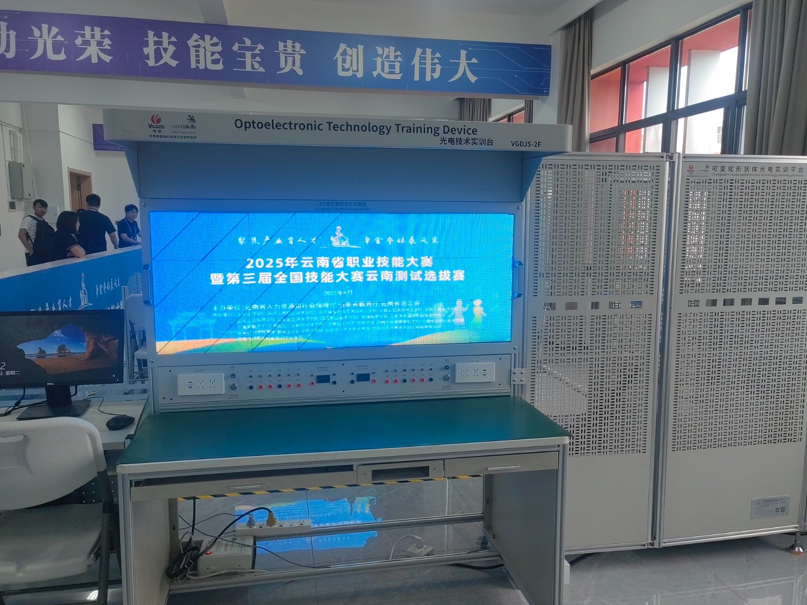 本次大赛严格对标世赛标准,设置了LED灯设计制作与调试、楼宇亮化工程安装与调试、LED显示屏安装与工艺优化三个实操考核模块,全面模拟了真实企业的工作流程,对选手的技术水平进行了全方位评估。