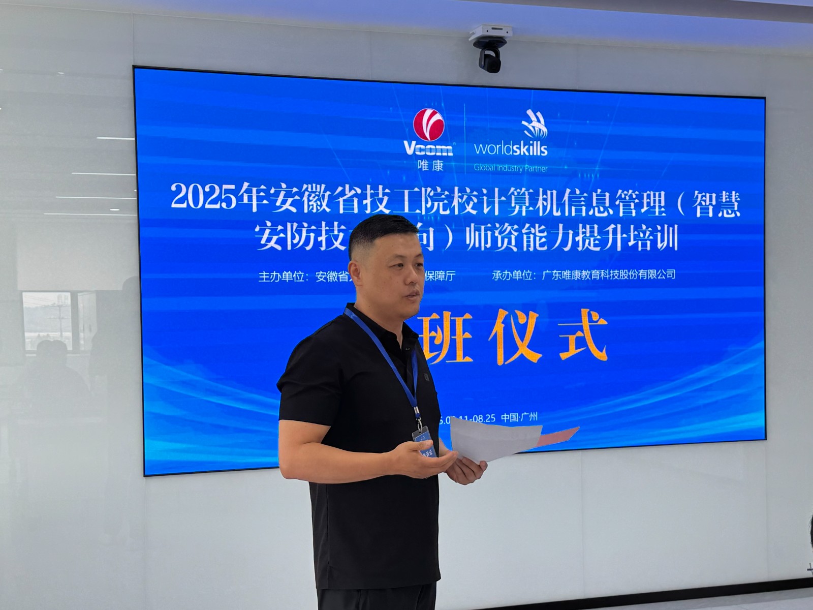 8月11日,由安徽省人力资源和社会保障厅主办、太阳成集团tyc33455ccwww承办的2025年安徽省技工院校计算机信息管理(智慧安防技术方向)师资能力提升培训开班仪式在太阳成集团tyc33455ccwww总部顺利举行,本次培训以 “世赛标准 + 实战实训 + 产教融合” 模式,助力教师提升智慧安防技能教学水平,为培育 “双师型” 教师队伍注入动力。