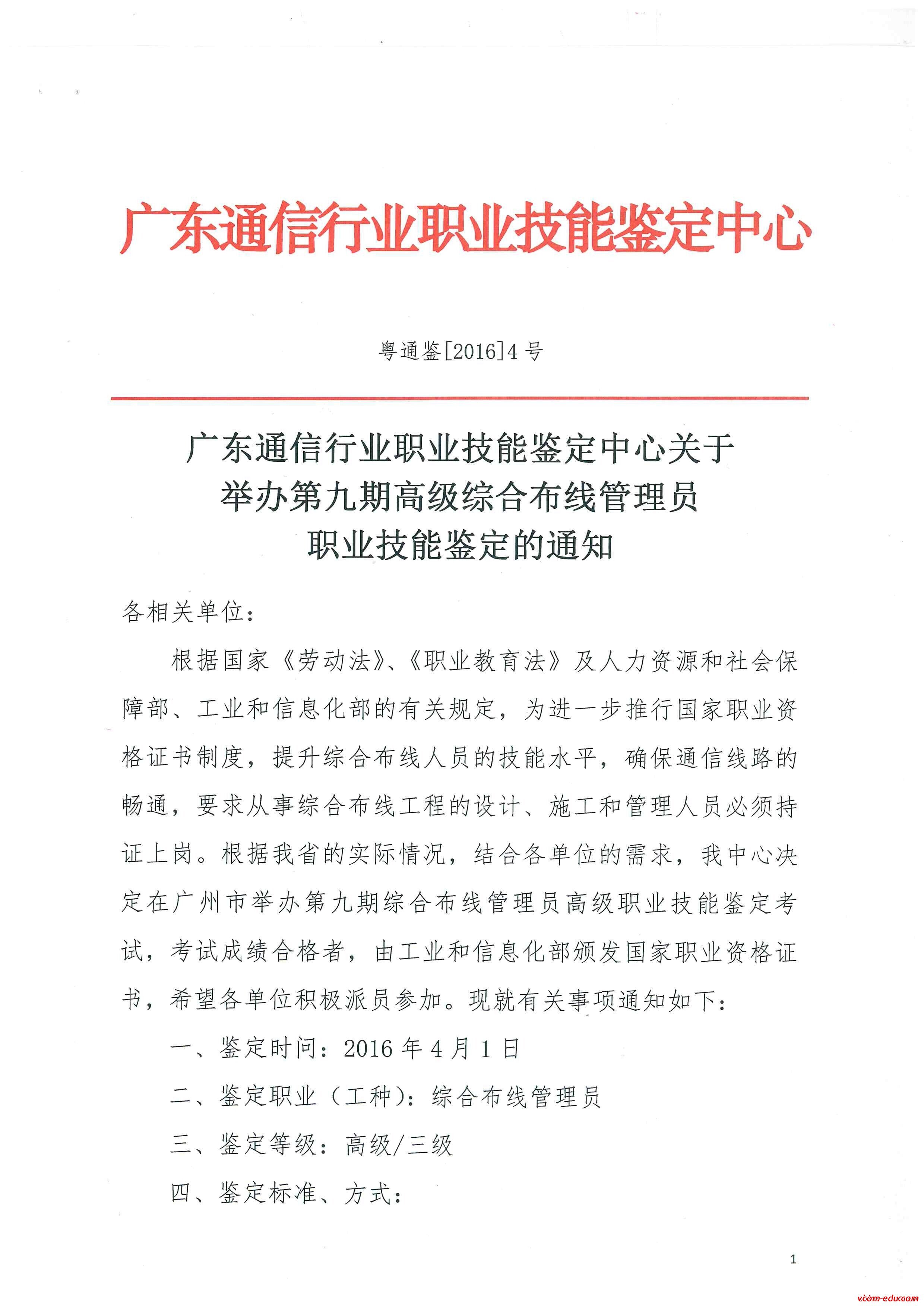 鉴定单位:广东通信行业职业技能鉴定中心